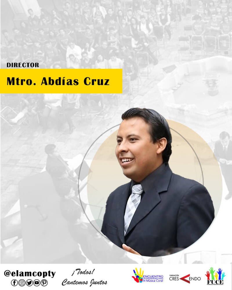 Mtro. Abdías Cruz, profesor comprometido con la formación musical en todas las edades a través de la difusión del arte sonoro, la creación de público, la docencia y el ejercicio del canto coral en todo lugar donde exista una voz dispuesta.