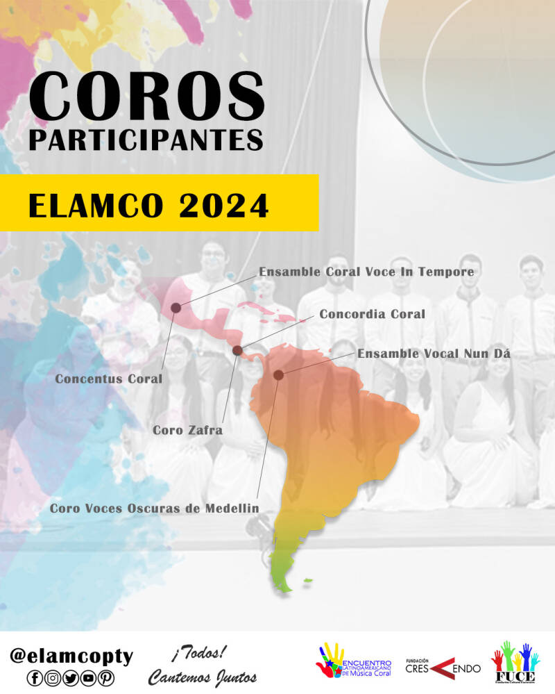 Del 21 al 25 de octubre del 2024 se llevará a cabo el VIII Encuentro Latinoamericano de Música Coral en la Ciudad de Panamá. Han sido 6 coros internacionales los seleccionados para participar del evento coral más importante de Panamá, estos coralistas se darán cita en nuestro país durante una semana llena de diversión, conocimiento y mucha música.